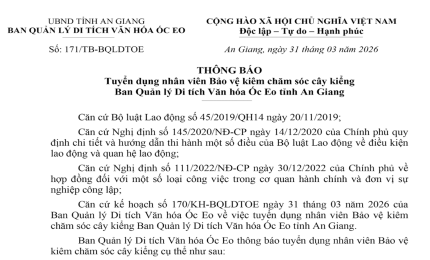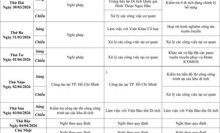THÔNG BÁO Lịch làm việc của Lãnh đạo Ban Quản lý Di tích Văn hoá Óc Eo (Từ ngày 09/03/2026 đến ngày 15/03/2026)